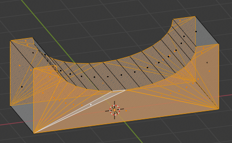Blender supports rendering faces with an arbitrary number of sides. But, UDK does not. It only does triangles. So, we need to convert these crazy side faces into triangles.