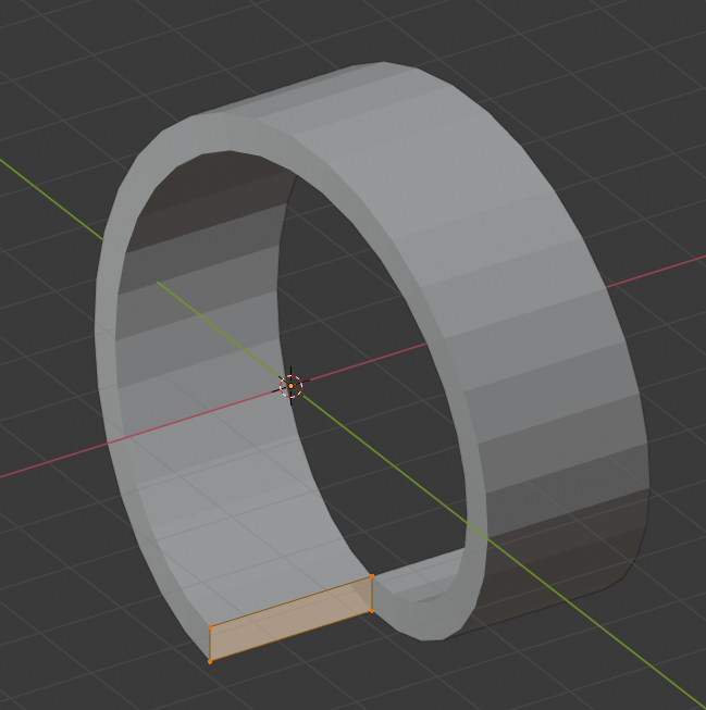 Grab the rectangle and move it down in the Z axis to wherever looks good. Exit Edit Mode and press Apply on the Screw Modifier. This creates editable geometry for the whole loop. Move the whole loop up so that the upper edge of the end faces is level with the X-Y grid. Lastly, fill in the end faces of the loop.